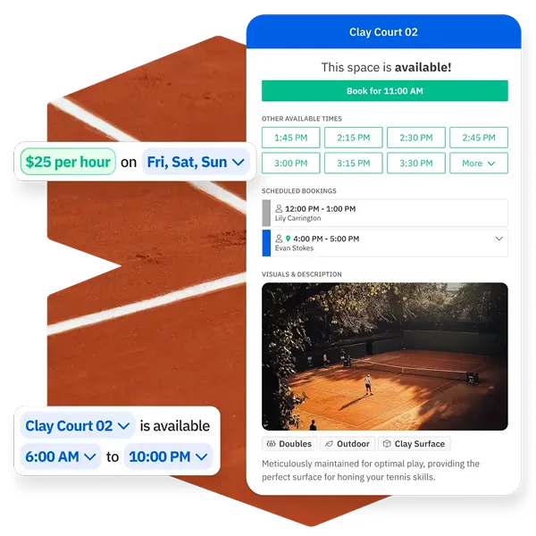 Offer a beautiful, intuitive, and informative interface for users to book your spaces.