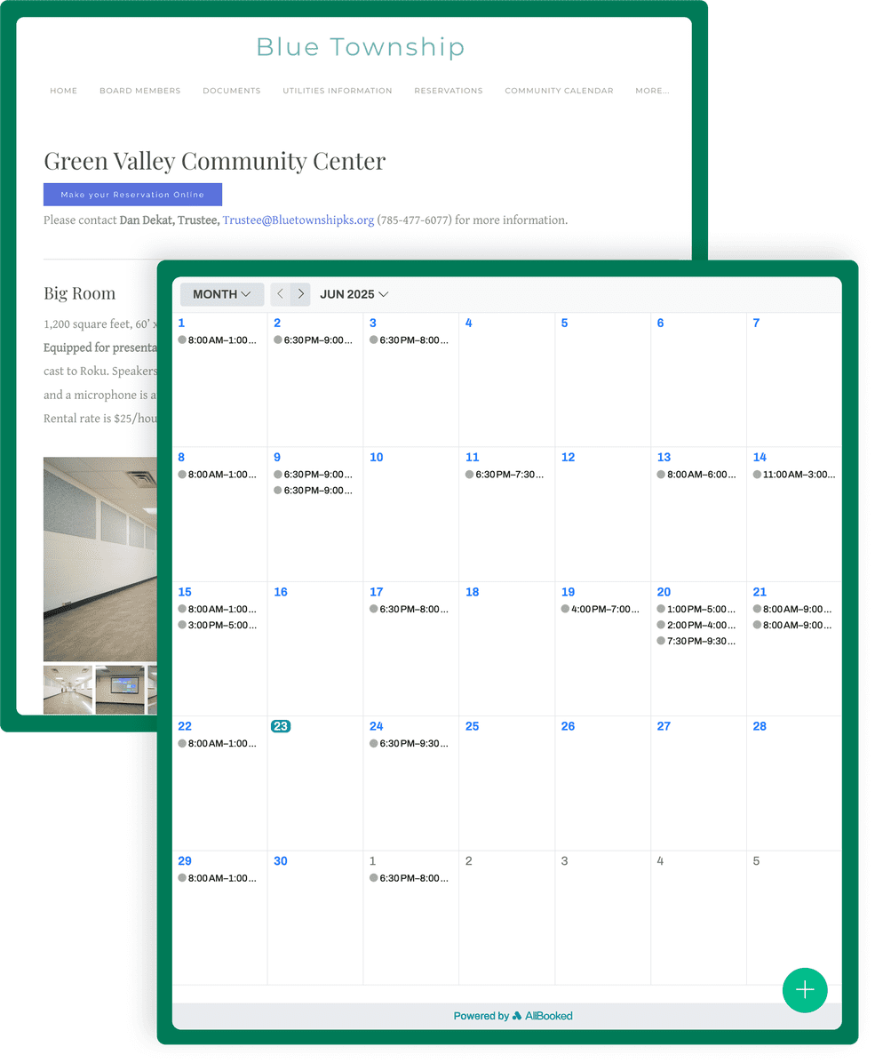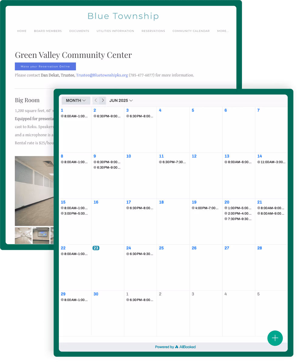 Dustin Taylor, Clerk of Blue Township, explains that in recent years, the area has experienced the largest surge in population growth it’s ever seen. With this boom came an increase in facility usage requests—everything from birthday parties and church gatherings, to soup suppers—all of which were managed by a single person: the trustee. Almost just as quickly the bookings came in, did the trustee realize they couldn’t keep up.