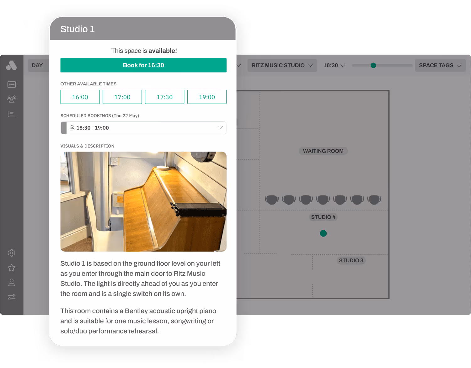 Before AllBooked, Ritz Music Studio had one core offering: top-notch music lessons. Afterward, they were bringing in a steady second stream of income. How? Simply by making empty spaces easy to book. And that’s the key: easy.