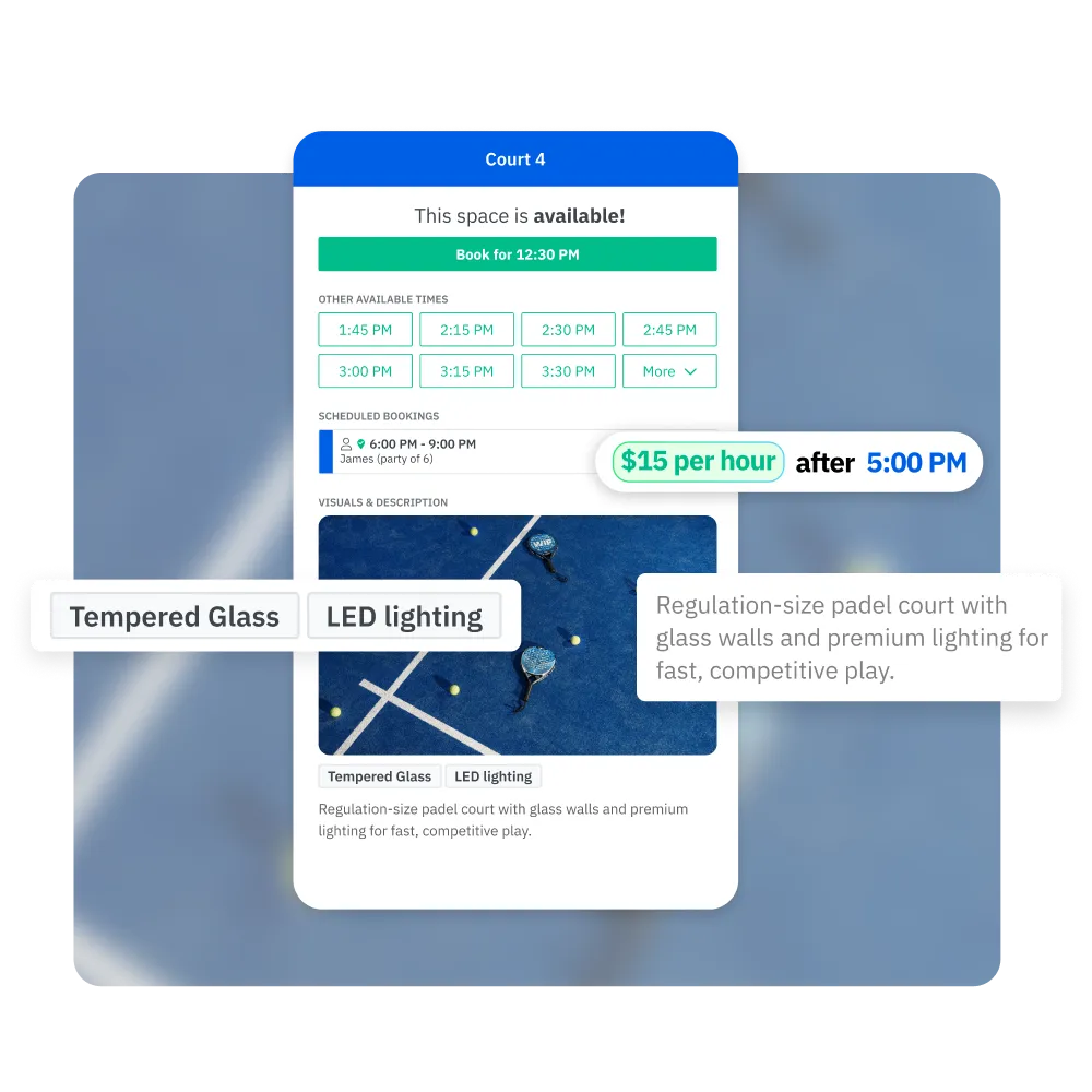 Monetize your spaces with customizable pricing rules and integrated payments.